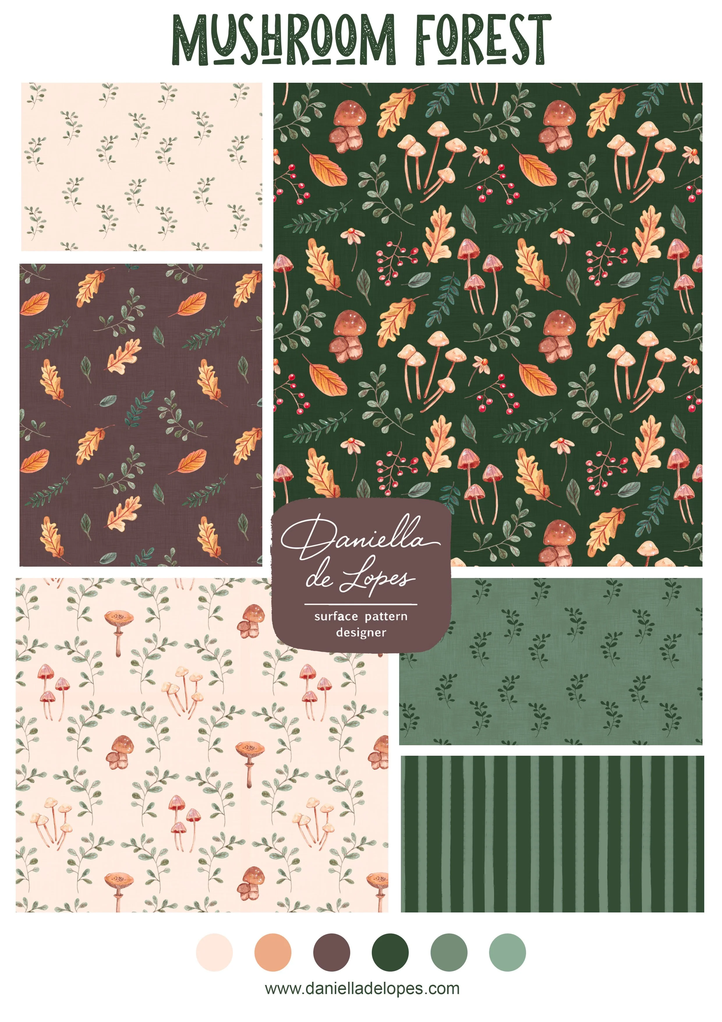Explore a set of patterns that bring the forest indoors, perfect for children’s clothing, home décor, and stationery.